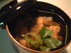 ![]() 吉野鶏とウドのお吸い物 |